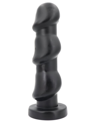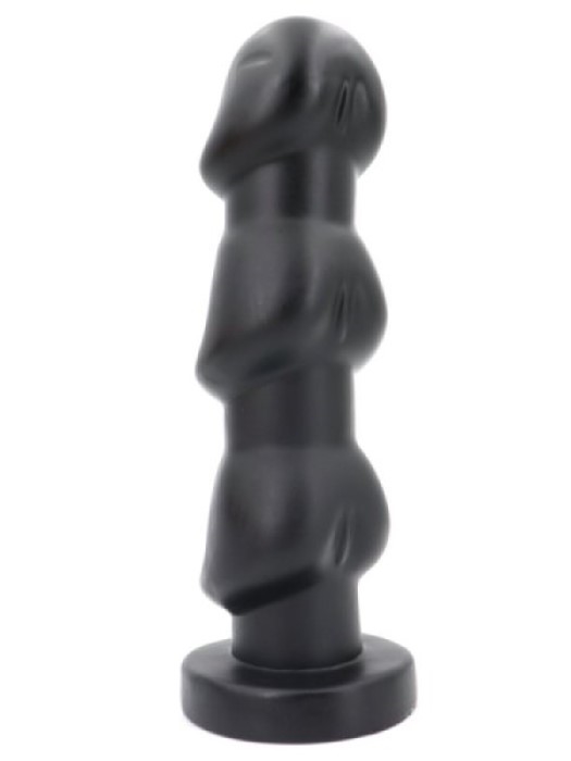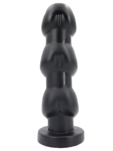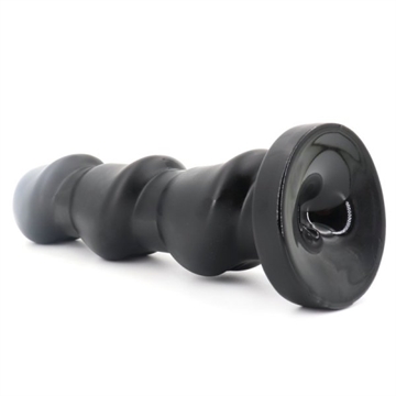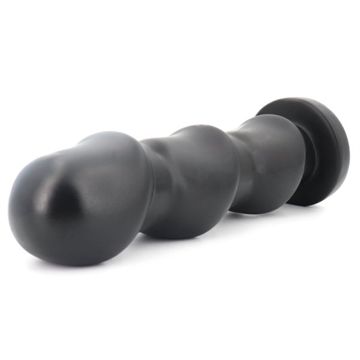 Kæmpe anal plug i sort soft touch pvc materiake, pluggen er massiv i aflang form som en lang prop. Denne anal dildo er med rund sugekops stopper i bunden der fungere som en sugekop, glat skaft og tredobbelt svampeformet penishoved.