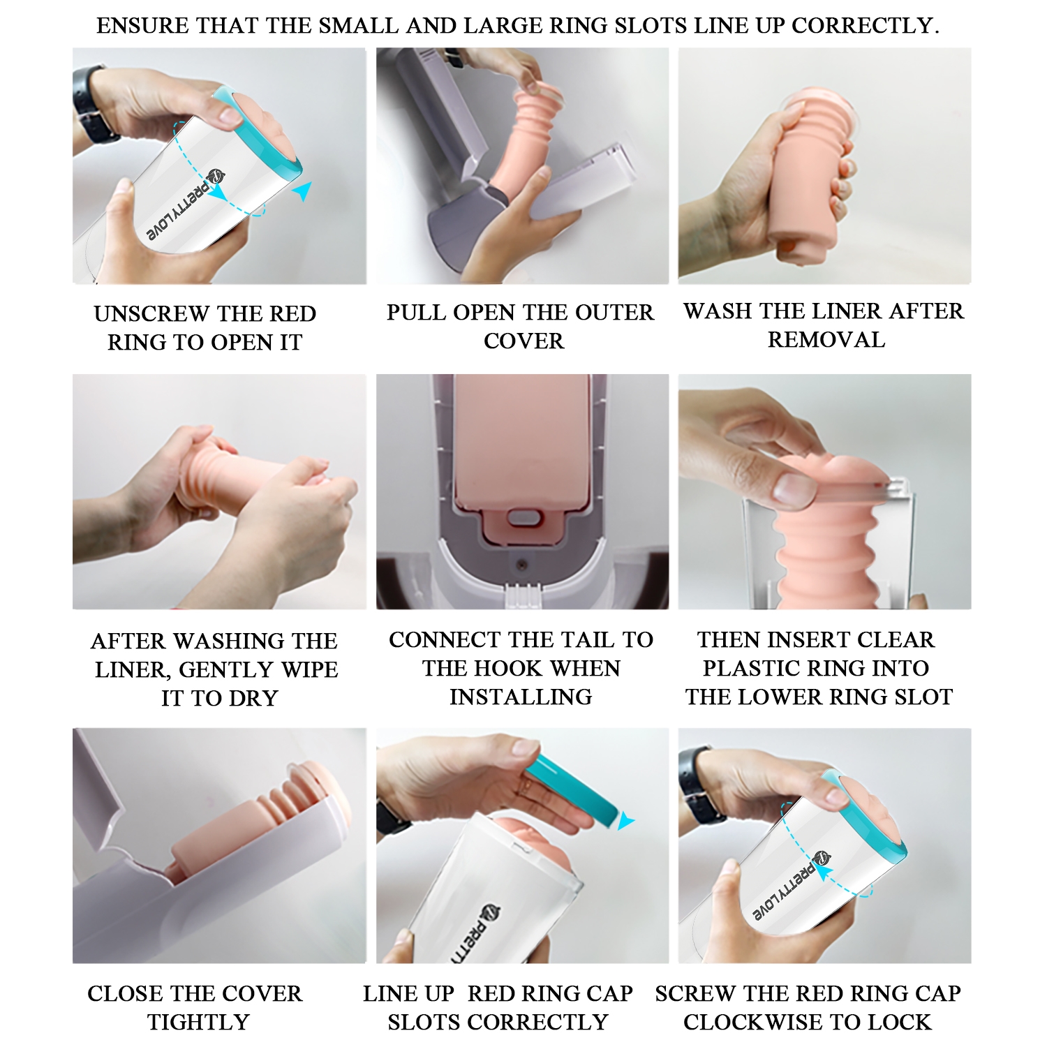 Masturbatoren skal rengøres med køligt til lunkent vand og sexlegetøjsrens eller -sæbe egnet til TPR produkter. Produktet skal aftørres efter rengøring, og det anbefales at bruge sexlegetøjs godkendt pudder på overfladen hvis den skal ligge i længere tid, eller føles klisteret på overfladen. Dette forlænger sexlegetøjets levetid.