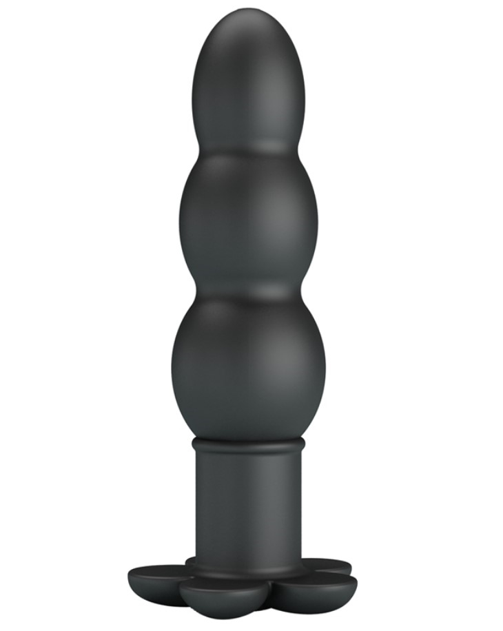Stimulerende butt plug til anal stimulation. Dette produktet kan bruges af nybegyndere såvel som erfarne, pluggen er i bølgende form med 3 kugler for optimal pirrende effekt under sexlegen. Pluggen er lavet i medicinsk silikone som føles lækkert blødt ved berøring af overfladen. Den kommer med vibration og har 3 hastigheder samt 7 interval indstillinger, vi anbefaler at afprøve interval vibrationerne da disse kan give en rungende vibrerende stimulation. Med en pirrelig vibration og lydsvag.