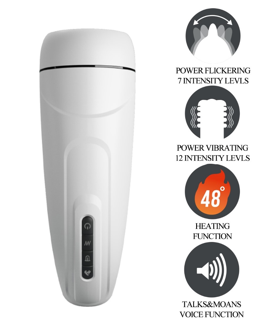 Oplev kraftfulde og intense klimaks med Pretty Loves slikkende og vibrerende masturbator. Det silkebløde indre af denne genopladelige masturbator varmes op til en autentisk temperatur, mens den kraftfulde motor kan prale af 7 slikkemønstre og 12 vibrerende intensitetsniveauer for din personlige nydelse. Fordyb dig i mundlignende slikkefornemmelser, når mekanismen pulserer og vibrerer tæt omkring din pik. Det grebvenlige ydre på denne masturbator gør det nemt at finde den perfekte position til et uforglemmeligt klimaks.
