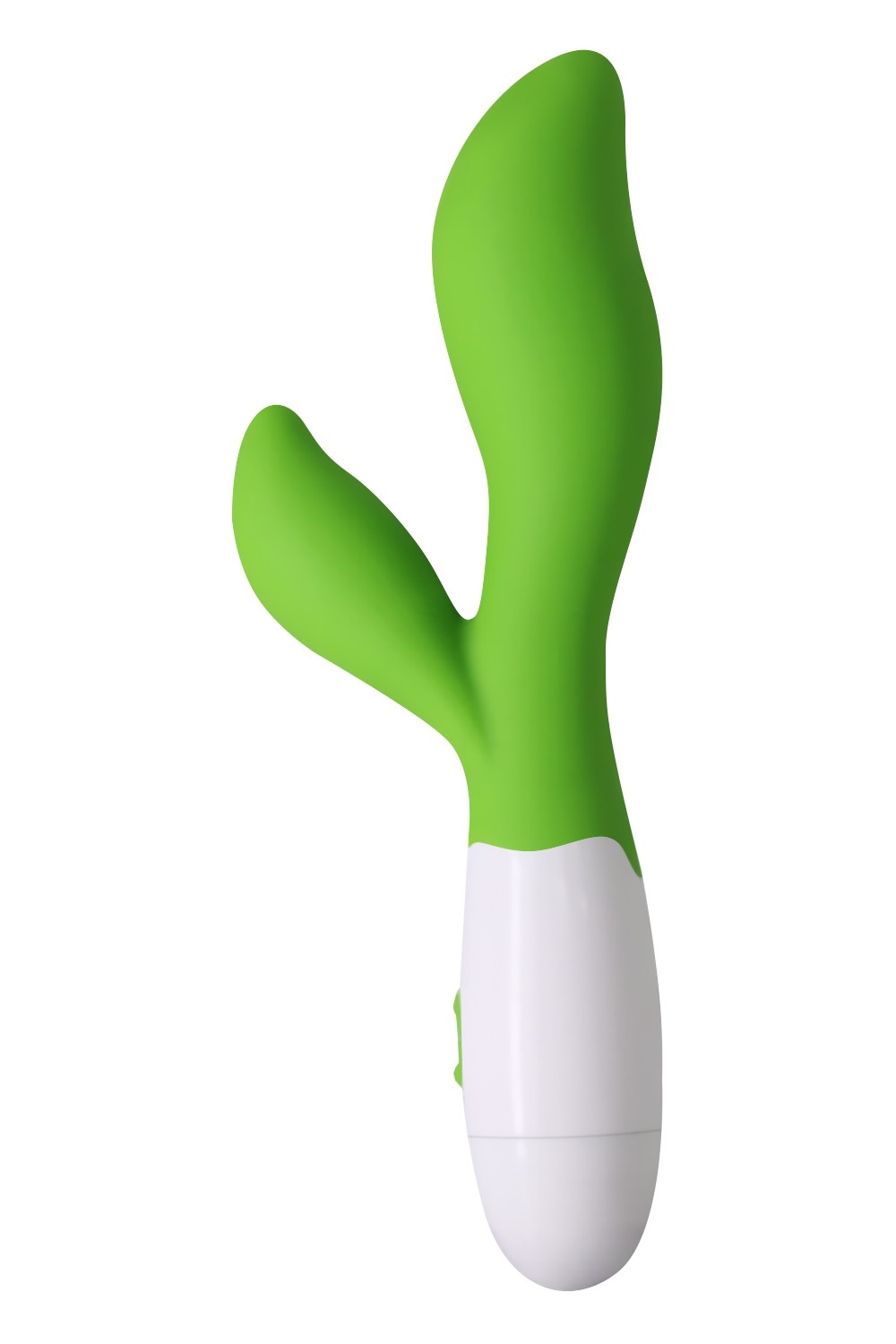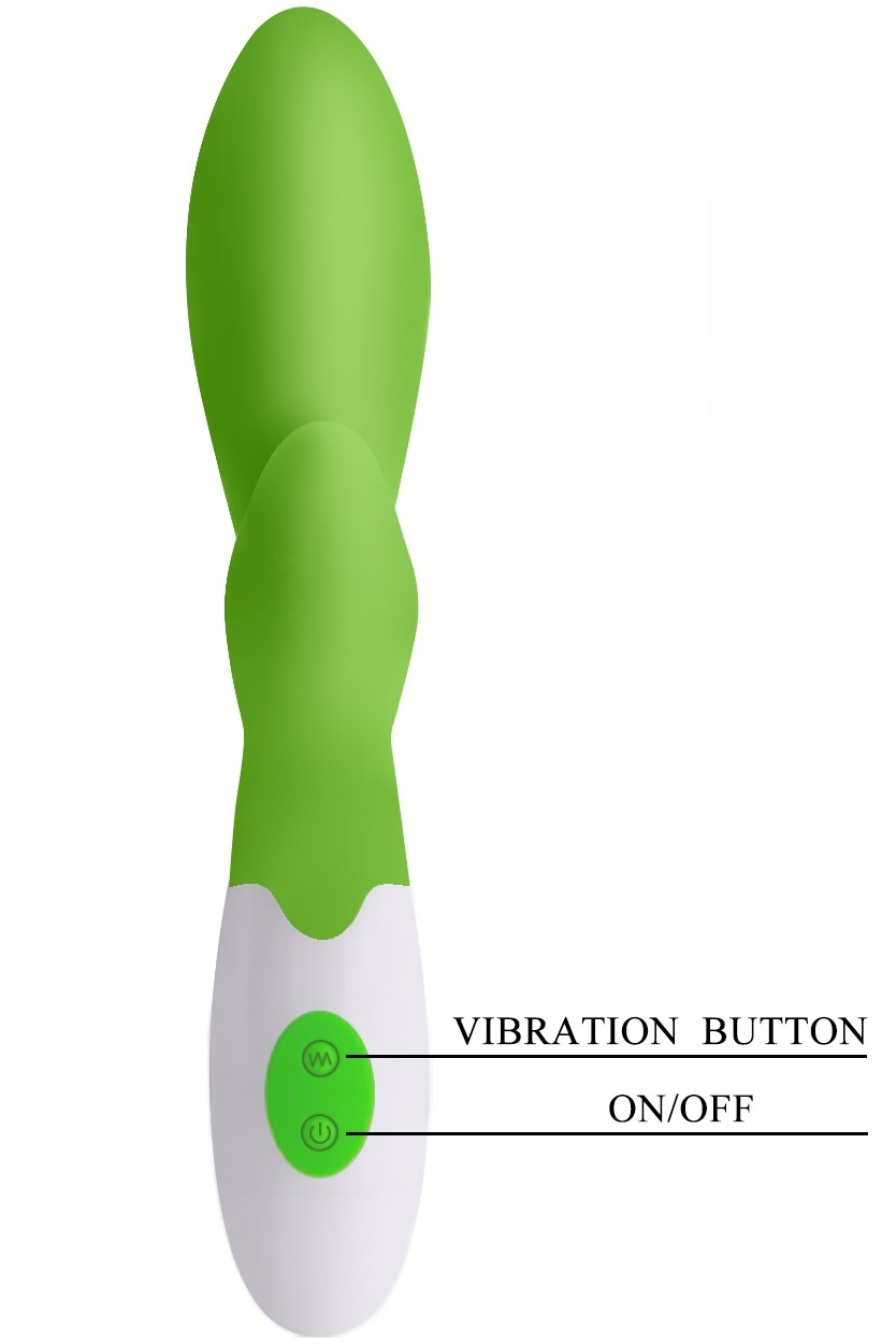 Owen er en livlig grøn vibrator dildo med dobbelt stimulation. Denne vibrator er med både indvendig g-punkts vibration og udvendig klitoris vibrator. Den er lavet i et enkelt og tidsløst ergonomisk design, og i en frisk farve. Den er med en dyb og blød vibration i skaftet og en lettere dyb vibration i klitoris vibratoren. Vibratoren er lavet i medicinsk silikone der gør legetøjet glat i overfladen, mindsker friktion og nem at rengøre. Den er med lydsvag vibration og er nem at styre på det forenklede panel. Den kommer med 30 forskellige vibrations indstillinger.