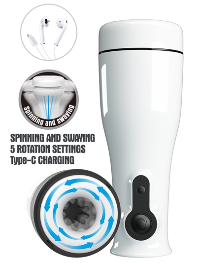 Roterende herre-masturbator; et førsteklasses legetøj med stemmefunktion og tryksensorisk knap til rotation. Denne masturbator gør det hele - det roterende indre giver fem forskellige hastigheder af utrolige fornemmelser. Du kan bevæge dig for at få den helt rigtige vinkel for en utrolig finish. Denne herre-masturbator vil ryste din verden, mens den roterer og masserer dig på alle de rigtige måder.