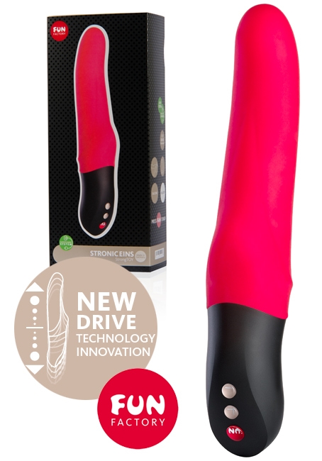 Stronic Eins Pulsator dildo, genopladelig g-punkts dildo uden vibrationer men i stedet med pulsator stimulator. Dildoen er med pulsation der er designet til mimiker effekt af samleje da den skaber en penetrerende stimulations effekt. Dildoen er lavet i 100% medicinsk silikone, har 10 forskellige pulsationer. Denne model er kun egnet til vaginalt brug.