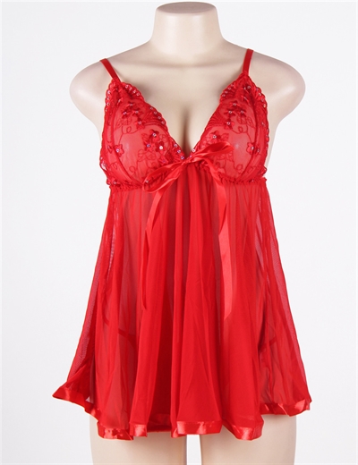 Rød babydoll lingerie kjole og g-streng