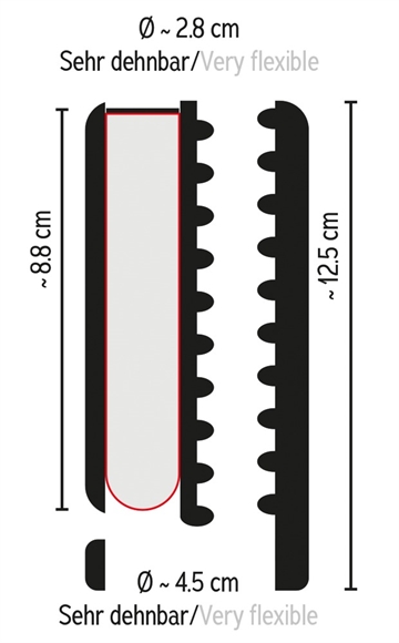 Samlet længde / indsættelseslængde 12,5 cm, indvendig Ø 2,8 cm (meget elastisk).