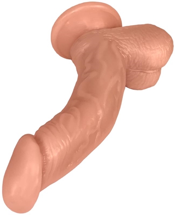 Slank og tilspidset naturtro dildo med sugekop. Denne lange dong er lavet i højkvalitets materiale, fleksibiliteten i produktet gør den behagelig og let at bruge, da den er fast i formen. Dette gør denne dildo i naturligt udseende med lækre nydelsesgivende årer langs penis og tilspidset penishoved, perfekt til brug i harness eller til vaginal samt øvet analleg. Dildoen måler 18cm og har en indførelses længde på 14cm, den kan let bruges til strap-on eller anal udforskning da både sugekoppen og pungen fungere som stopper.